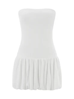 Women Strapless Mini Dress Summer Solid Color Puff Bubble Party Dress for Cocktail Beach Streetwear
