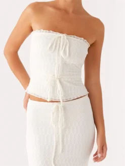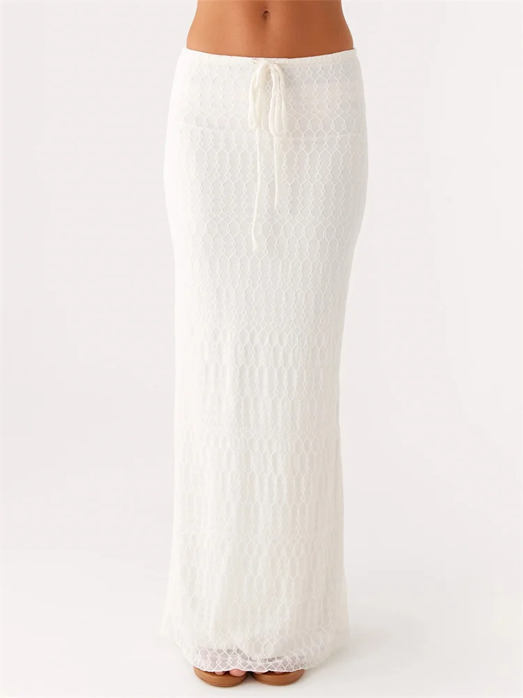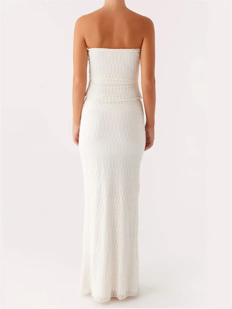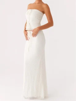Women Summer 2 Piece Outfits Drawstring Bandeau Crop Tops and Elastic Long Skirt Set for Streetwear Aesthetic Clothes
