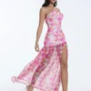 Women Summer Casual Long Dress Flower Embroidery Tie-Up Halter Neck Sleeveless Dress Fashion Backless A-line Dress