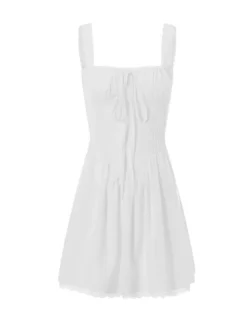 Womens Summer Flowy Dress Sleeveless Square Neck Tie-up Front Short Tank Dress Casual A-line Dress
