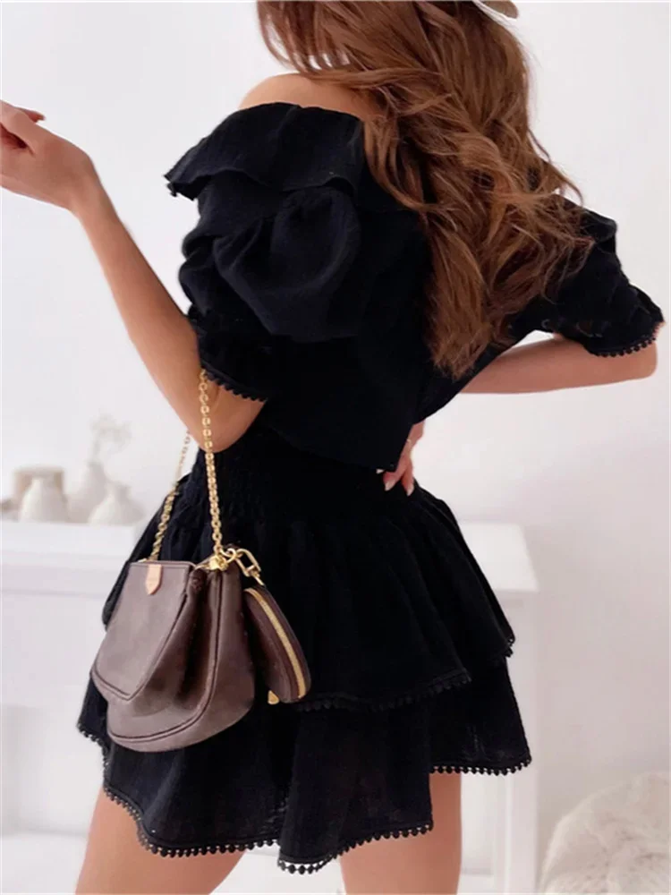Women Summer White Dress Puff Short Sleeve Off Shoulder Ruffle Layered Dress Bohemian Y2K Aesthetic Dresses Female