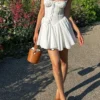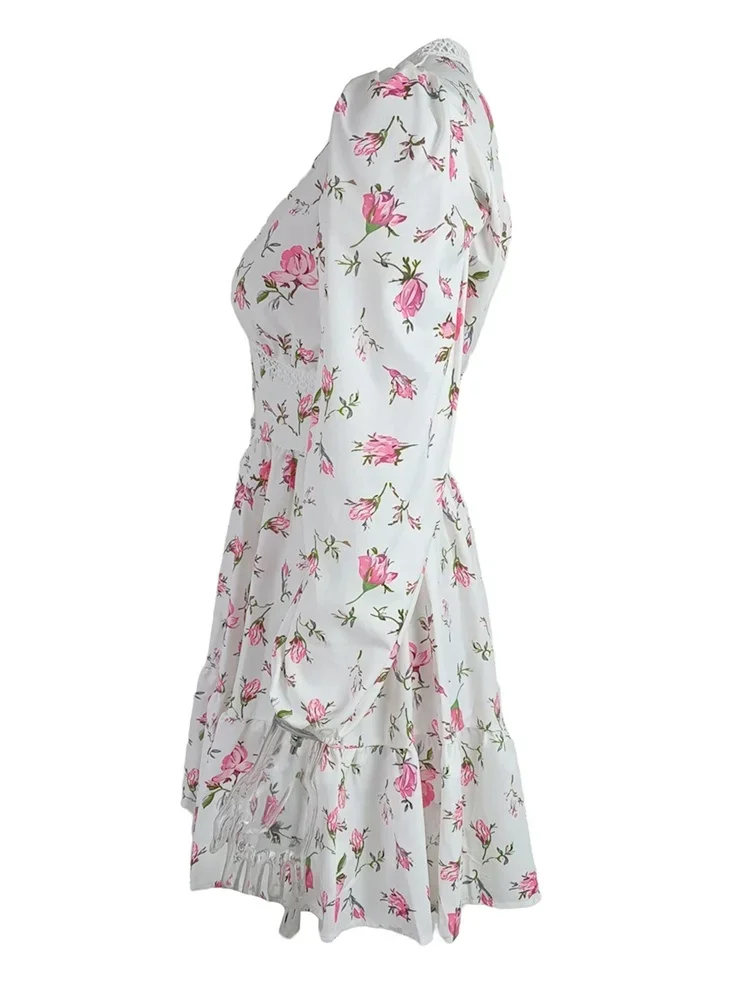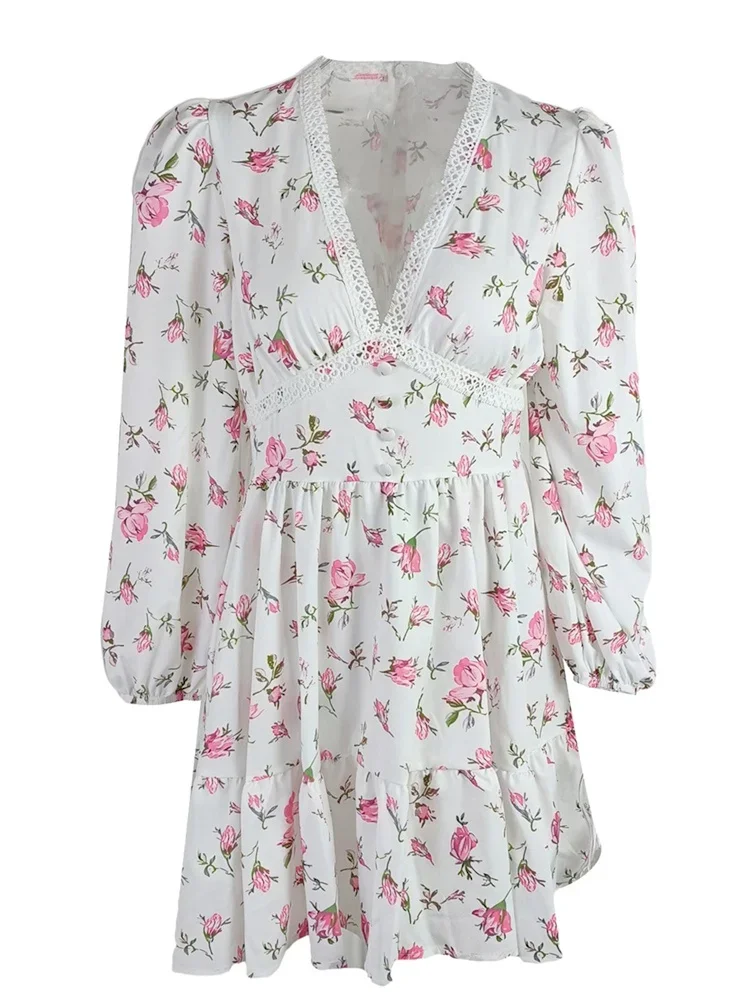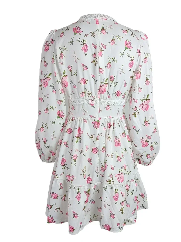 Women’s Floral Print French Vintage Dress Long Sleeve Deep V Neck High Waist A-line Dress Spring Fall Casual Dresses