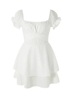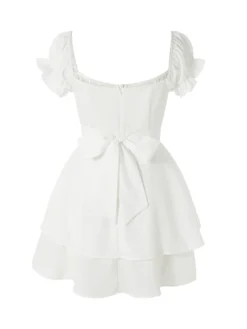 Women’s Mini A-Line Dress Solid Color Ruffled Sleeves Square Neck Layered Hem Dress