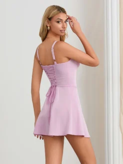 Women Summer Sling Dress Solid Color Sleeveless Tie-Up Corset Fishbone A-line Dress French Retro Sexy Elegant Dresses
