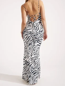 Women’s Zebra Print Cami Dress Sleeveless Tie Backless Bodycon Long Dress Summer Beach Retro Dress