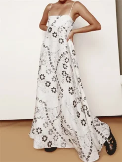 Women’s Summer Long Dress Floral Print Spaghetti Strap Loose Flowy Dresses Casual Party Bohemian Sundress